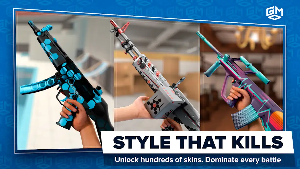 GMO — экшен с элементами шутера от первого лица об управлении оружием, наведении прицела, стрельбе. Предстоит исследовать карты, например, «Арена», «Полигон». Доступны настройка сложности сервера и управления. Можно танцевать, общаться, участвовать в событиях. Есть функции паузы и автоматической стрельбы, кастомизация персонажа с помощью одежды, масок, эмоций. Присутствуют свыше 100 скинов для оружия. Есть русскоязычный интерфейс, авторизация по логину и паролю или с помощью учетной записи Google.