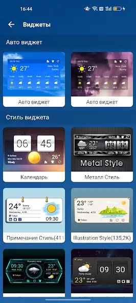 Погода — погодный виджет для просмотра прогноза по часам, дням. Можно настраивать единицы измерения, узнавать уровень влажности, температуру, направление и силу ветра, вероятность, тип осадков, точку росы, видимость, облачность. Данные обновляются ежедневно. Есть предупреждения о штормах, ливнях, грозах и прочих явлениях, выбор стиля виджета. Доступен просмотр индекса качества воздуха, к примеру, содержания диоксида азота, оксида углерода. Имеется показ времени восхода и заката солнца.