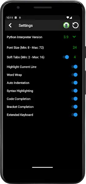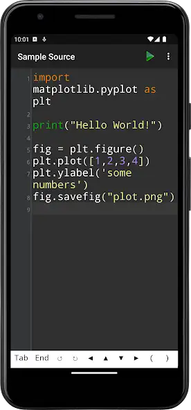 Python Programming Interpreter — интерпретатор для выполнения команд, написанных на одноименном языке программирования, в течение 20 секунд. Позволяет компилировать и запускать по одному объекту, строить графики, изучать, тестировать фрагменты кода, просматривать вывод программы, информацию об ошибках, устанавливать пакеты. Можно открывать, сохранять и импортировать файлы Python, делиться ими через Интернет.