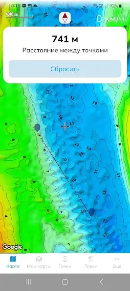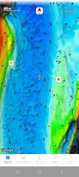 «Глубины водоемов для рыбалки» — интерактивная карта с функцией навигатора, помогающая рыбакам в поиске рыбных мест. Показывает рельеф, бывшее русло, затопленные овраги, старые деревни и прочие объекты. Присутствуют компас, структурные карты Сурского, Старооскольского, Шушпанского, Чебоксарского и других водохранилищ, рек, озер. Отображает текущую геолокацию через GPS, скорость, направление движения, расстояние между объектами, масштаб.