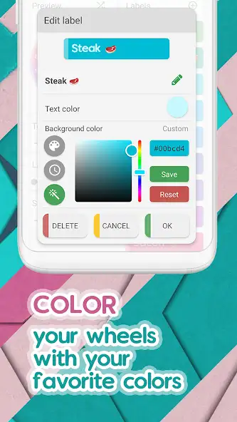 В разделе кастомизации доступна настройка цветов фона, оттенков и размеров текста. Имеются функции активации, деактивации вариаций ответов. Присутствуют пресеты, возможности аннулирования действий, удаления, сохранения колес фортуны. В приложении Spin The Wheel можно общаться с другими людьми, смотреть их результаты, отправлять рулетки, итоги вращений друзьям. Доступны предварительный просмотр и редактирование ярлыков. Есть звуковое сопровождение, статистика, навигация с помощью стрелок.