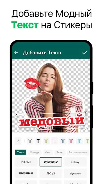 - делать наклейки в HD-качестве и с использованием искусственного интеллекта, добавлять на них текст, украшения, контур, фон;